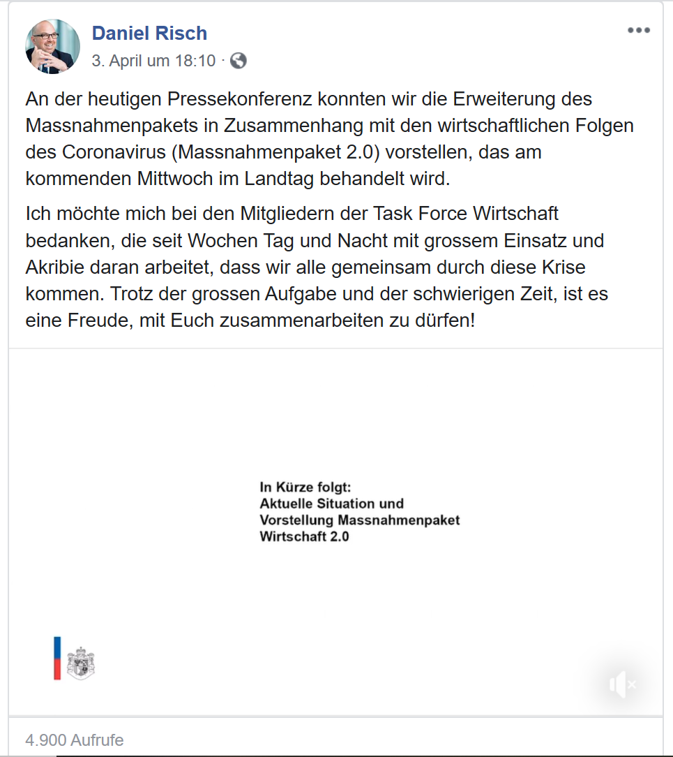 8. Mai 202015. Mai 2020 AbstimmungSM_48 Liechtensteiner Vaterland berichtet live von Pressekonferenz am 03.04.20, ab 07:49 wird berichtet, dass Abstimmung verschoben wird SM_45 geteilt durch Daniel Risch Video: SM_53
