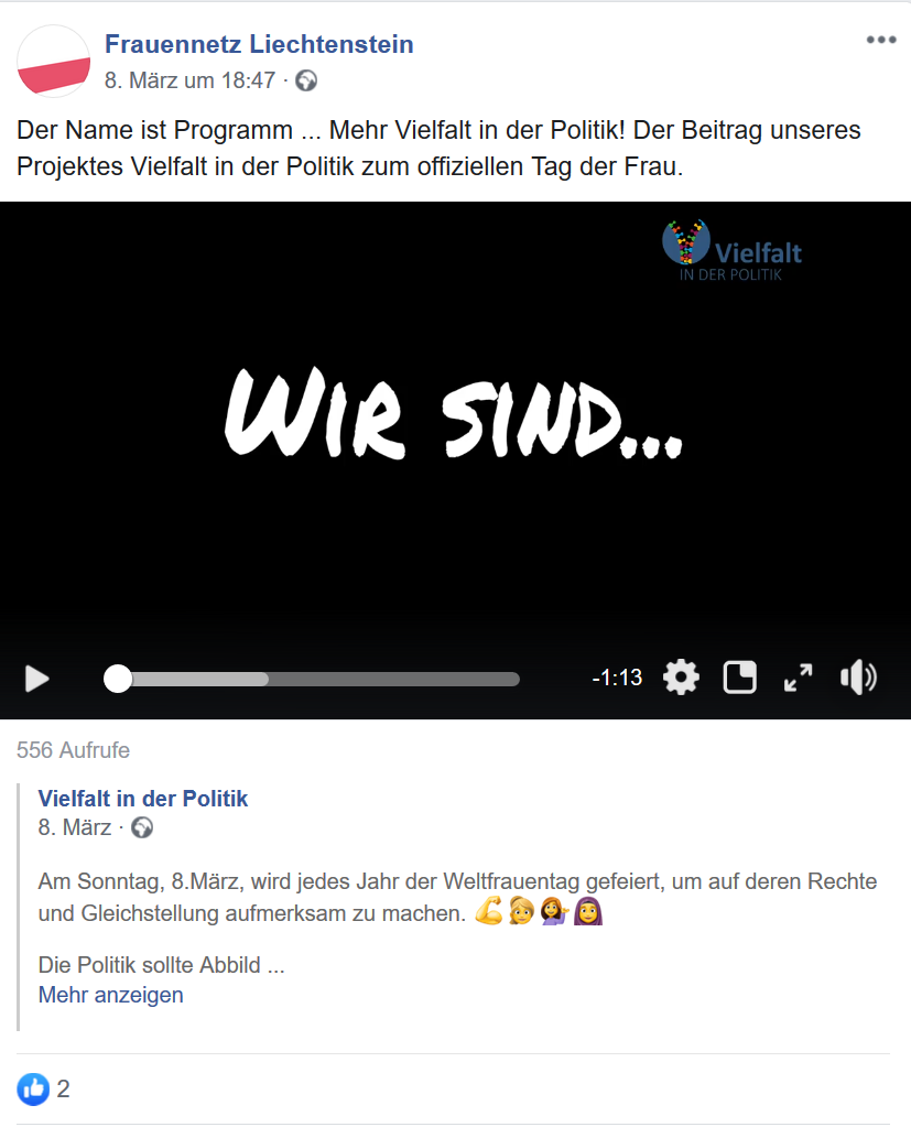 8. Mai 202015. Mai 2020 WeltfrauentagSM_50 Video von Vielfalt in der Politik zum Weltfrauentag SM_51 und SM_52 geteilt von Frauennetz Liechtenstein